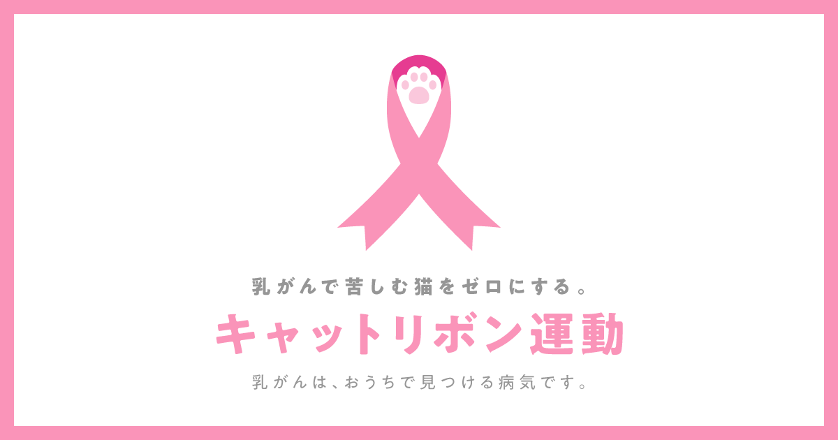 キャットリボン運動は「乳がんで苦しむ猫をゼロにすること」を目標とした猫の乳がんの啓発運動です。