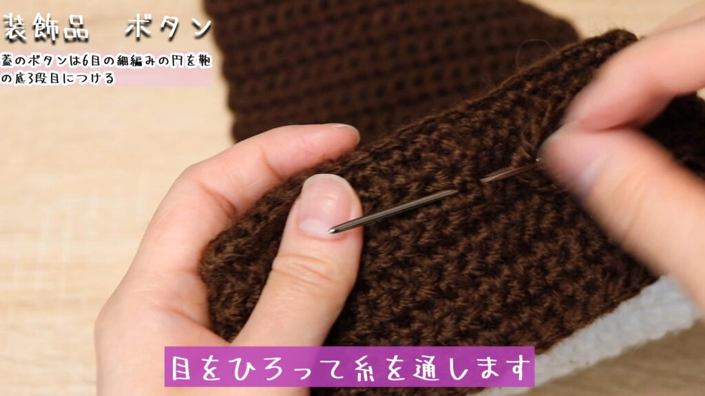 - 蓋の縫い目はなみ縫いで糸を通す
