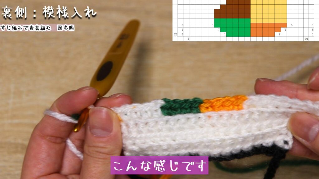 裏側と同様にあと3段編んでいきましょう。